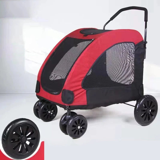 Luxury Collapsible Dog Pet 4 Wheels Trolleys Stroller for Medium and Large Dogs